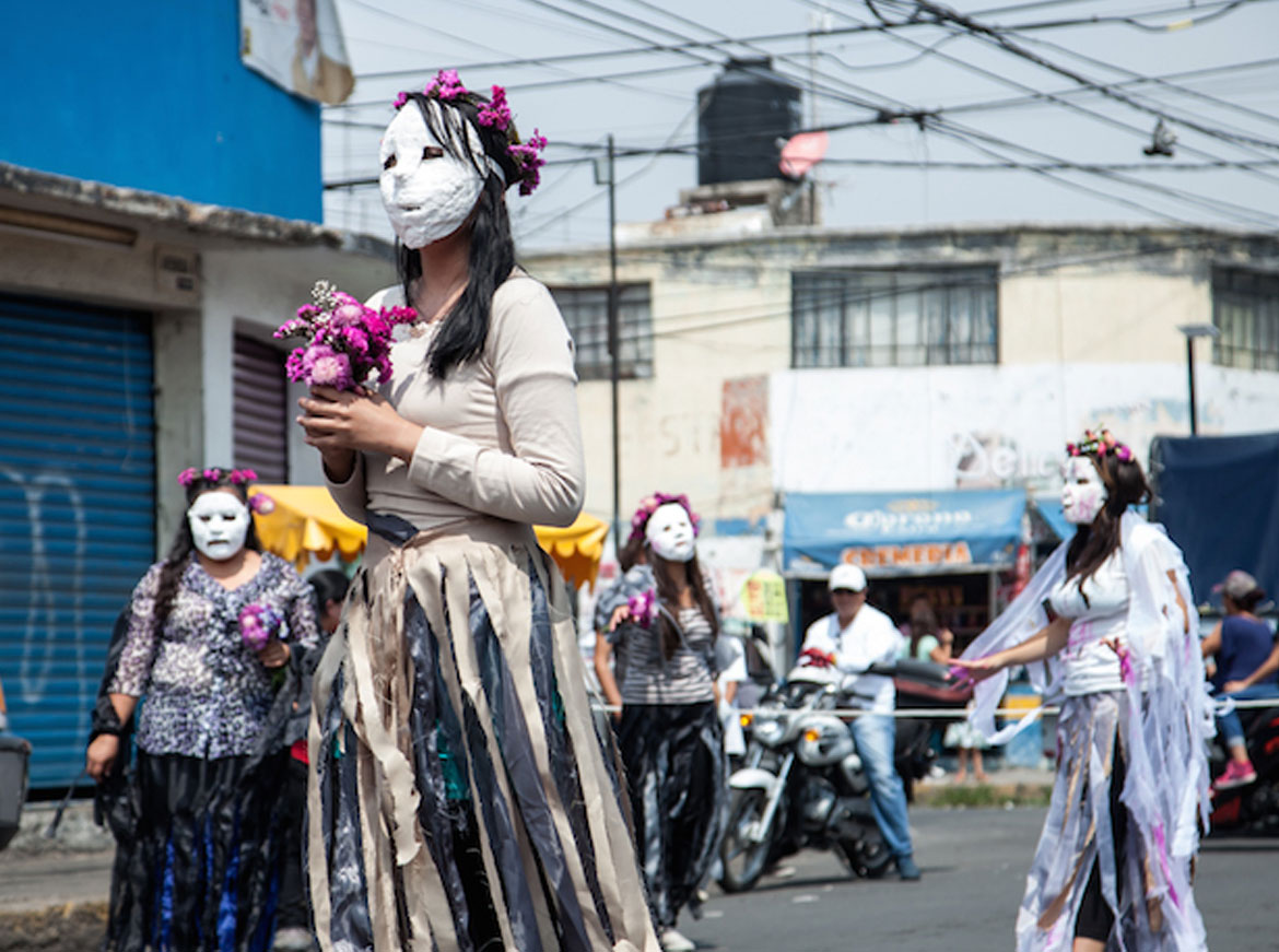“¡Justicia!”, se oye desde abajo y las niñas se muerden las uñas, los dedos. No han dejado de observar con atención y ahora ven cómo las mujeres comienzan a quitarse las máscaras y tras ellas, aparecen los rostros de Sarahí, Esmeralda, Marlene, Dulce, Beatriz, las mujeres valientes que han transformado por unos instantes un sitio de asesinato e infamia en un altar y una ofrenda a la memoria y la dignidad. Toman las máscaras, los rostros de las muertas del Estado de México, y las sostienen junto a sus caras, una a una, denunciando por última vez para luego dejarlas como un último recuerdo, una última ofrenda, repartidas por todo el sitio del crimen.
