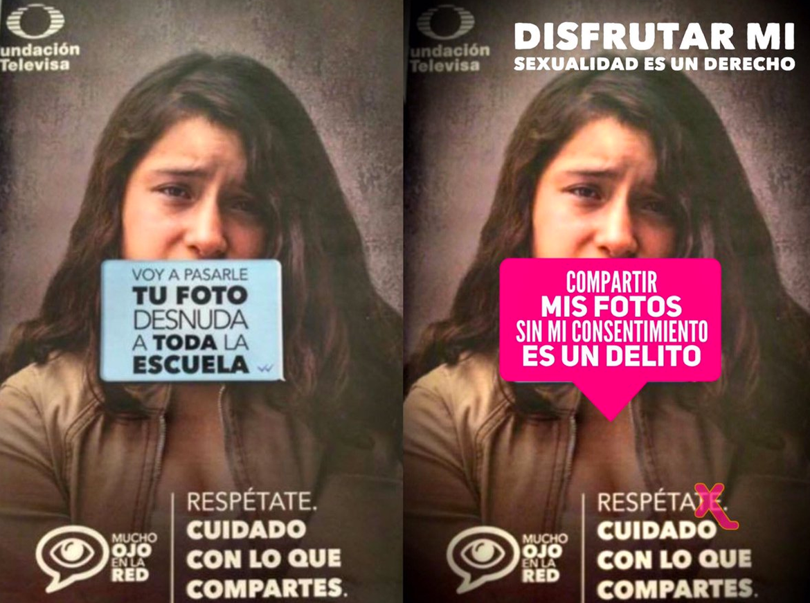 “Mucho ojo en la red” es una campaña de la Fundación Televisa y la Alianza por la Seguridad en Internet (ASI) que pretende alertar a padres y madres de familia acerca de los riesgos de ciertas prácticas en línea como el sexting y el ciberbullying. Sin embargo, su enfoque e imágenes promocionales estigmatizan al sexting y culpan a las víctimas de la difusión no consentida de material íntimo.