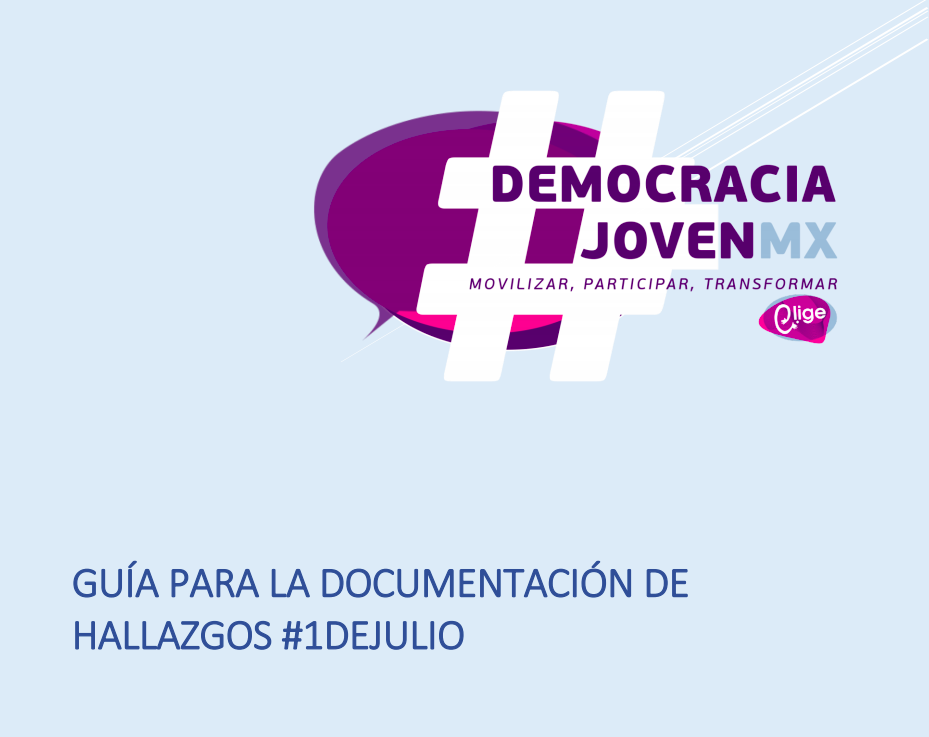 El objetivo de la presente guía proveer algunas herramientas que permitan recopilar hallazgos durante la jornada del 1º de julio para contribuir a la certidumbre y transparencia de las elecciones.
