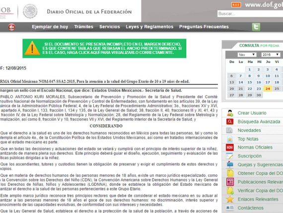 NOM-047-SSA2-2015, Para la atención a la salud del Grupo Etario de 10 a 19 años de edad